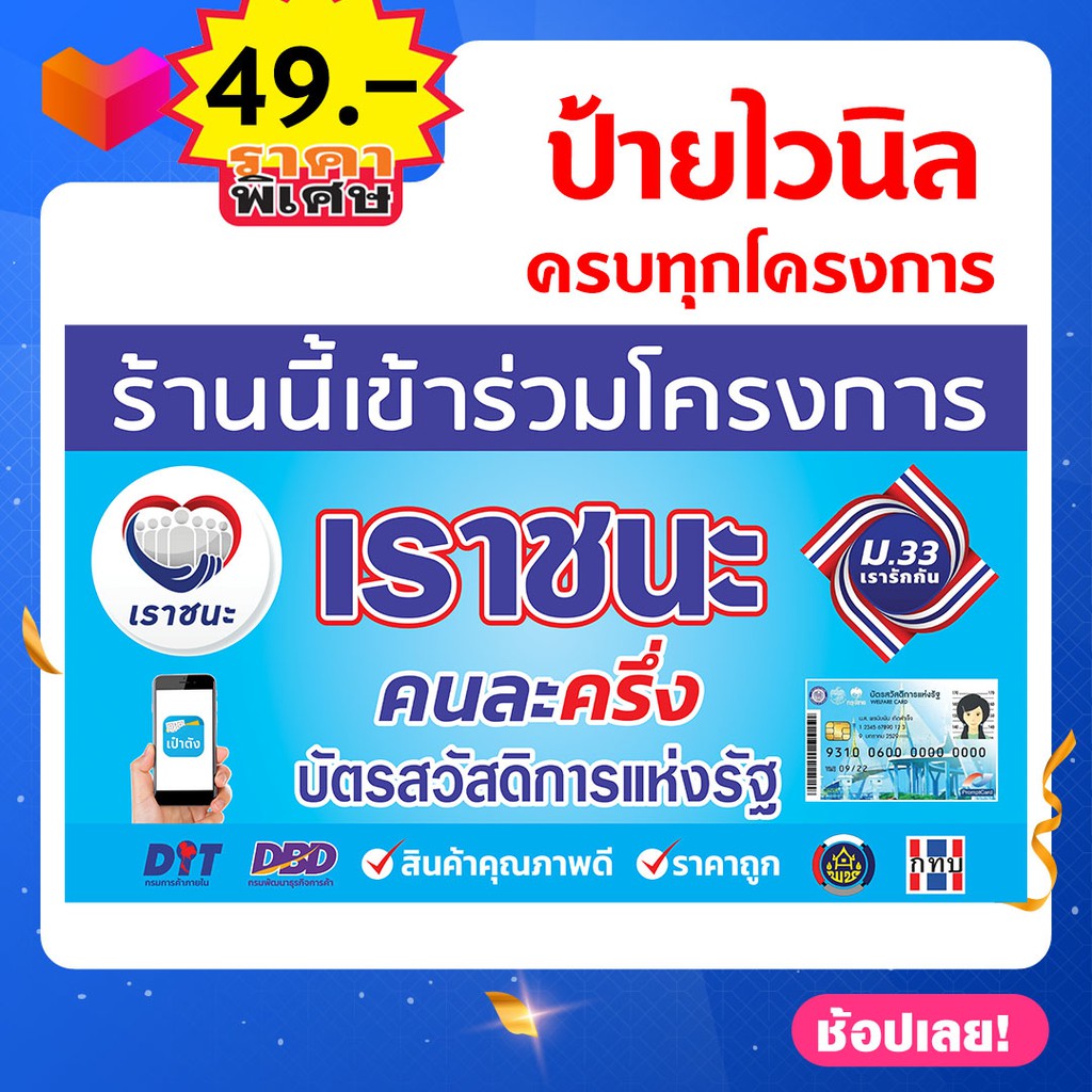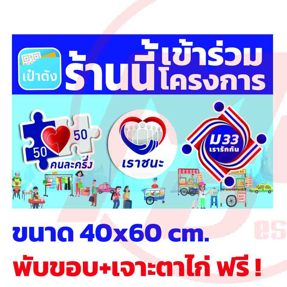 ป้ายไวนิล เราชนะ ป้ายไวนิล คนละครึ่ง 50/50 ป้ายไวนิล ม33เรารักกัน ป้ายไวนิล บัตรประชารัฐ ** จัดส่งด่วนพิเศษ ถึงไว **เหมาะสำหรับ ร้านอาหาร หรือ ร้าน คนละครึ่ง 3. ป้ายโครงการ คนละครึ่ง ชิม ชอป ทั่วไทย รัฐออกให้ 50% ร้านค้าที่เข้าร่วมโครงการ สนใจสั่งได้เลยจร้า เลือกขนาด แก้ไขแบบ ใส่โลโก้ร้านค้าได้ตาม.